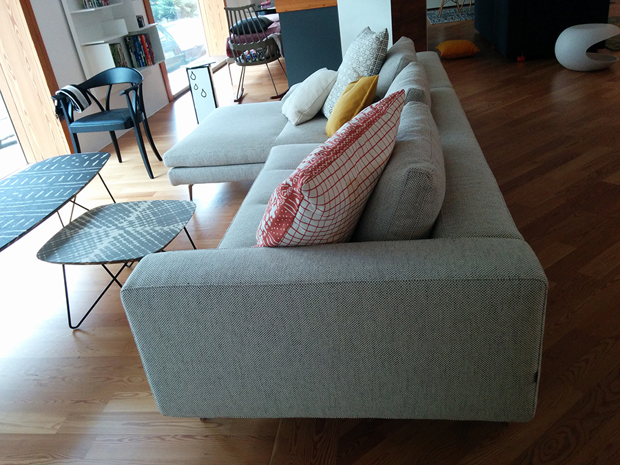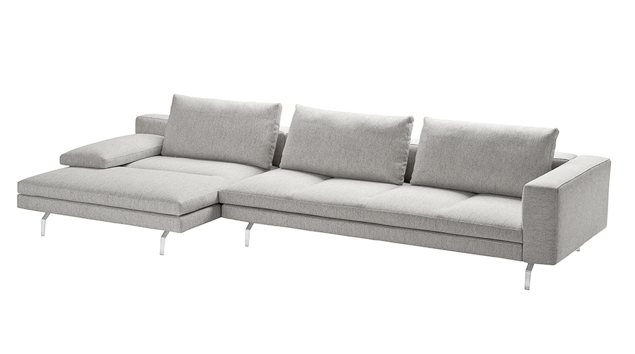 Bruce de Zanotta est une canapé réalisé de Ludovica + Roberto Palomba. Pieds en alliage d’aluminium poli. Structure en acier. Suspension sur sangles élastiques. Rembourrage en polyuréthane à densité variable/Dacron Du Pont. Coussin du siège en polyuréthane/Dacron Du Pont. Coussins du dossier et accoudoir en plumes d’oie. Rembourrage de cale-reins en polyuréthane/fibre polyester liée à chaud. Revêtement déhoussable en tissu.