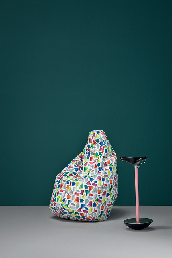 Housse contenant de petites billes de polystyrène à grande résistance. Revêtement en: VIP, Tulip, Pied de poule et cuir. La version en Tulip et Pied de poule sont déhoussables.