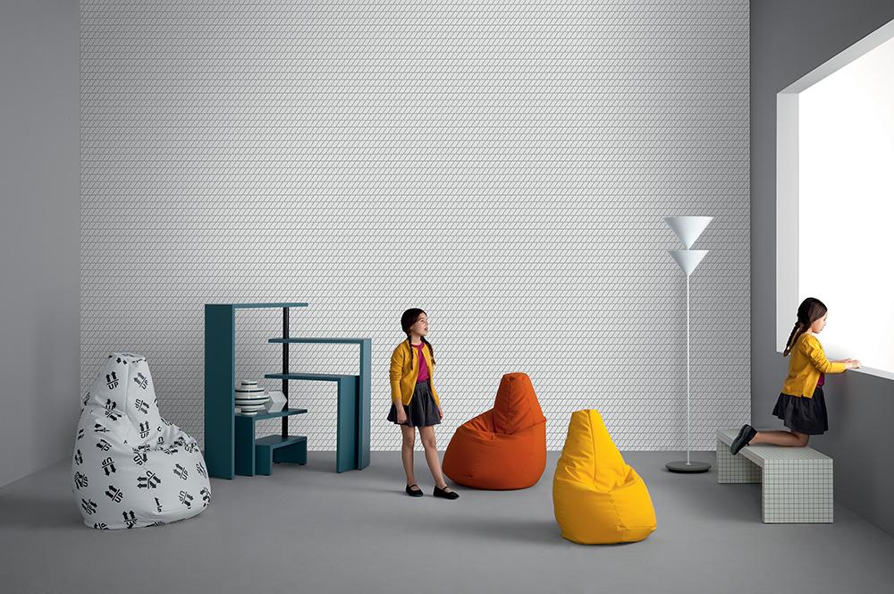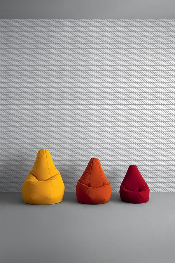 Housse contenant de petites billes de polystyrène à grande résistance. Revêtement en: VIP, Tulip, Pied de poule et cuir. La version en Tulip et Pied de poule sont déhoussables.