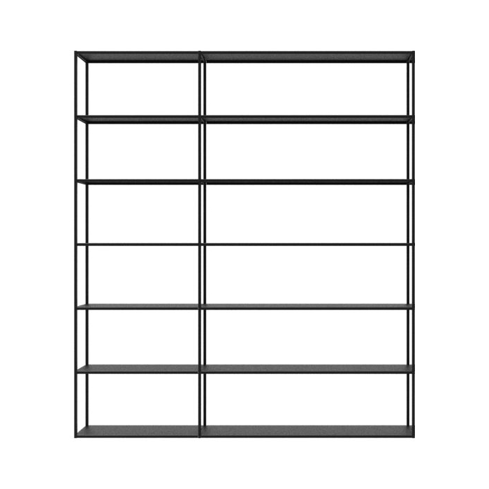 Easy Irony Zeus est une bibliothèque modulaire et amovible. Montants tubulaires carrés 15 x 15 mm et étagères en tôle pliée par pression de 1,5 mm d'épaisseur. Dimensions des étagères L 74 ou 104 cm. Peinture époxy poudre noire cuivre, nouvelle version sablé ou blanc gaufré. Prévu pour un montage mural. Espace utile entre les étagères 36 cm.