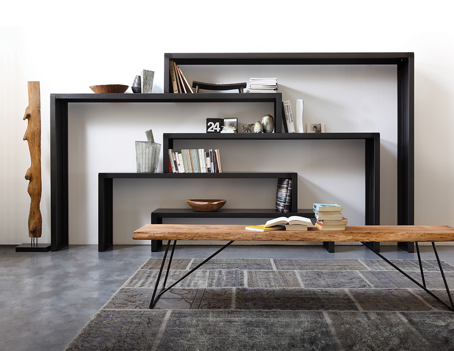 Babilonia Zeus est un set modulaire de trois consoles. Structure en tôle naturelle plié sous pression. Traitement phosphatation noir, fixation finale avec cire d'abeille. En alternative, il est possible de commande sur demande la version avec vernissage par poudre époxy couleur blanc gaufré ou noir cuivré.
