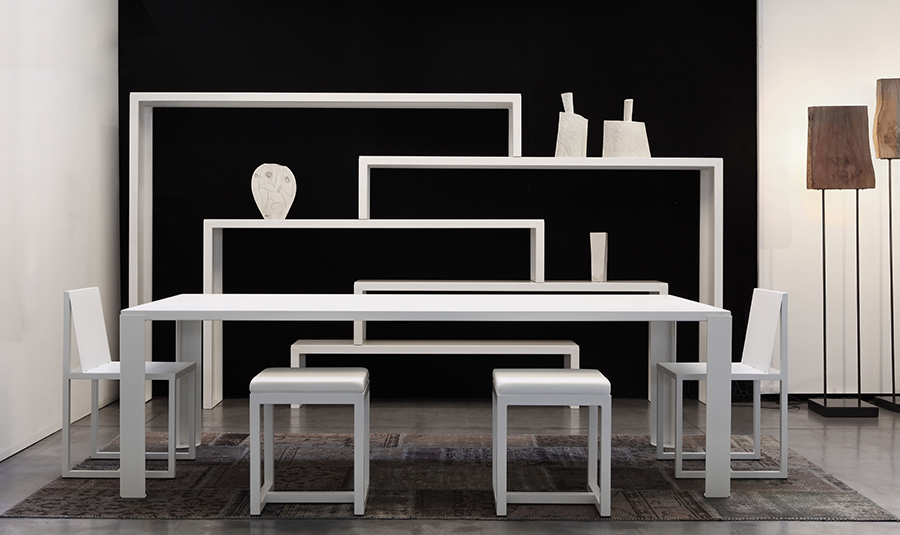 Babilonia Zeus est un set modulaire de trois consoles. Structure en tôle naturelle plié sous pression. Traitement phosphatation noir, fixation finale avec cire d'abeille. En alternative, il est possible de commande sur demande la version avec vernissage par poudre époxy couleur blanc gaufré ou noir cuivré.
