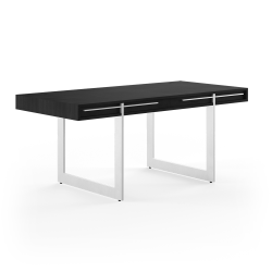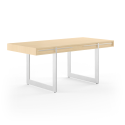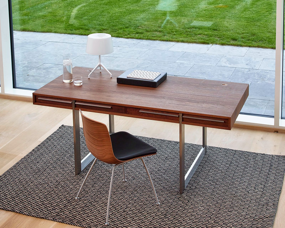 Naver Ak 1340, le bureau contemporain possède de nombreuses caractéristiques, telles que des passe-câbles dans le plateau et un compartiment caché pour le câblage. Les tiroirs sont reliés par un joint en queue d'aronde. La lueur chaleureuse du bois contraste joliment avec les pieds étroits en acier inoxydable, qui donnent au bureau un aspect presque flottant. L'acier inoxydable est répété sur les façades des tiroirs, avec les poignées longues, fines et élégantes. Dimensions: 170 x 80 x h 73 cm. Délai de livraison: 12 semaines.