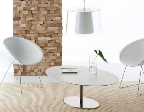 Pedrali table Inox elliptique avec base en acier inox brossé 75x50 cm. Laminé stratifié de couleur uniforme blanc chaud. Disponible même dans la version « coffee table » hauteur 40 cm avec base 60x40 cm