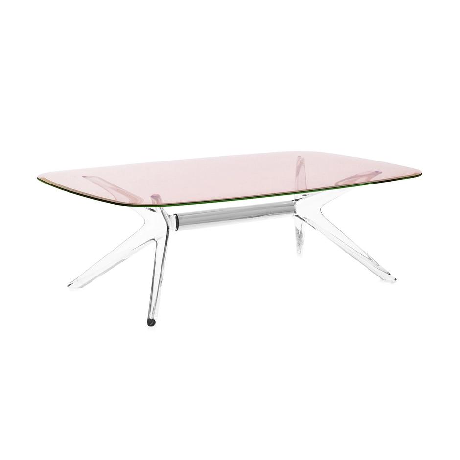 KARTELL table basse BLAST avec plateau rectangulaire (Plateau rose, structure cristal et chrome - Base en technoploymère et plateau en cristal stratifié)