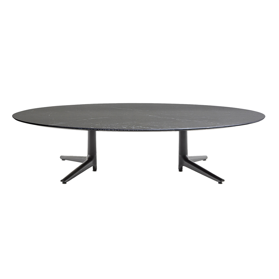 KARTELL table basse MULTIPLO LOW avec plateau oval (Noir - Aluminium moulé et plateau en céramique finition marbre)