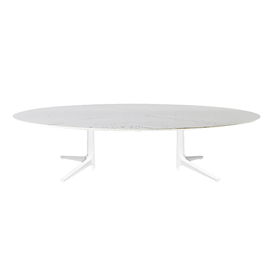 KARTELL table basse MULTIPLO LOW avec plateau oval (Blanc - Aluminium moulé et plateau en céramique finition marbre)