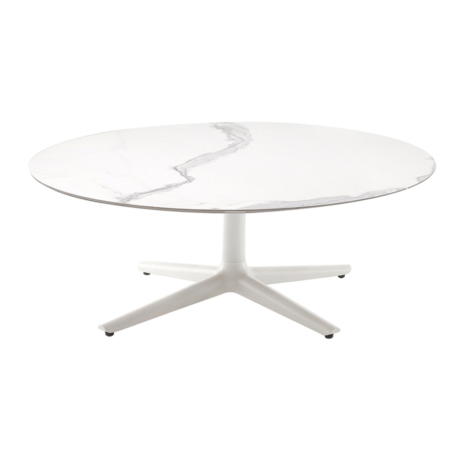KARTELL table basse MULTIPLO LOW avec plateau rond Ø 118 cm (Blanc - Aluminium moulé et plateau en céramique finition marbre)