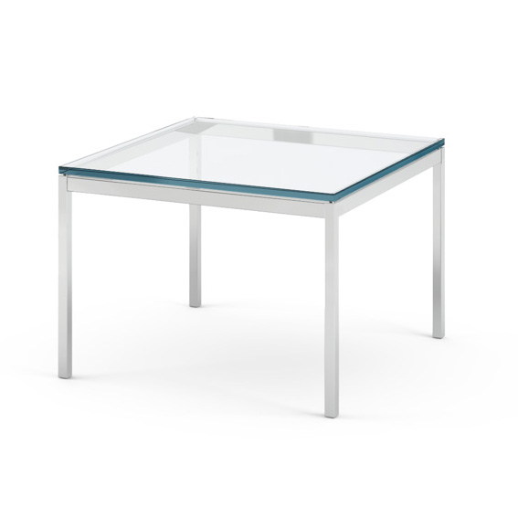KNOLL table basse FLORENCE KNOLL 60 x 60 x H 43 cm (Verre transparent - Acier chromé poli)
