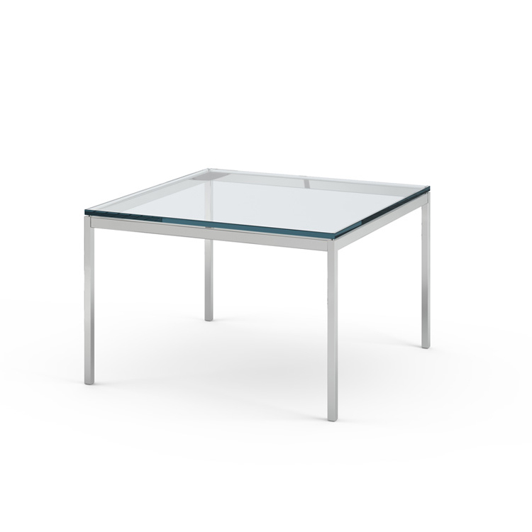 KNOLL table basse FLORENCE KNOLL 75 x 75 x H 48 cm (Verre transparent - Acier chromé poli)