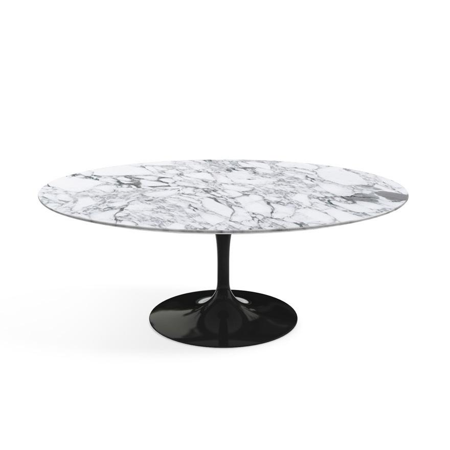 KNOLL table basse ovale TULIP collection Eero Saarinen 107x70 cm (Base noire / plateau Arabescato satin - marbre et aluminium)