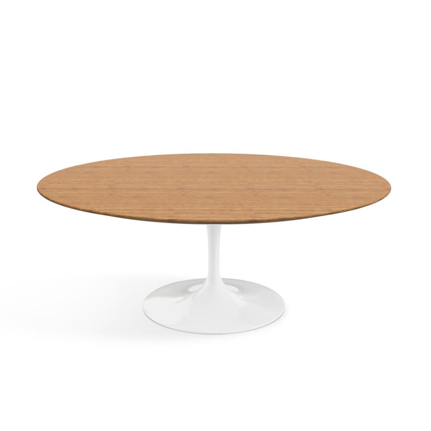 KNOLL table basse ovale TULIP collection Eero Saarinen 107x70 cm (Base blanche / plateau en teak - Bois et aluminium)