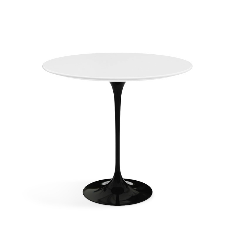KNOLL table basse ovale TULIP collection Eero Saarinen 57x38 cm (Base noire / plateau blanc - Plastique laminé et alluminium)