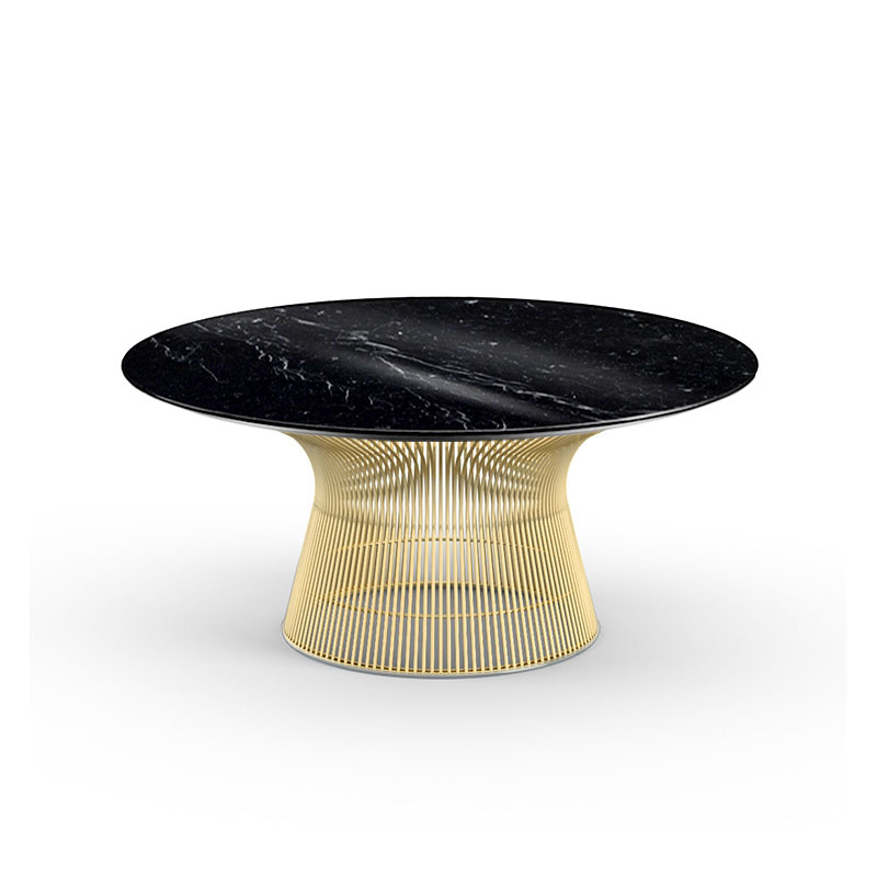 Knoll Platner est une collection réalisée par Warren Platner en 1962. Idéale pour un coin salon dans un bureau ou dans une maison. Disponible en version table à manger, guéridon et table basse. Le piètement est composé d'un faisceau de fils d'acier cintrés, soudés sur des cadres cintrés horizontaux en acier profilé. Finition nickel brillant avec vernis clair de protection, bronze métallisé ou or 18k. La base du piétement est un anneau de protection en profilé plastique, transparent. Le plateau est en verre trempé ou marbre.