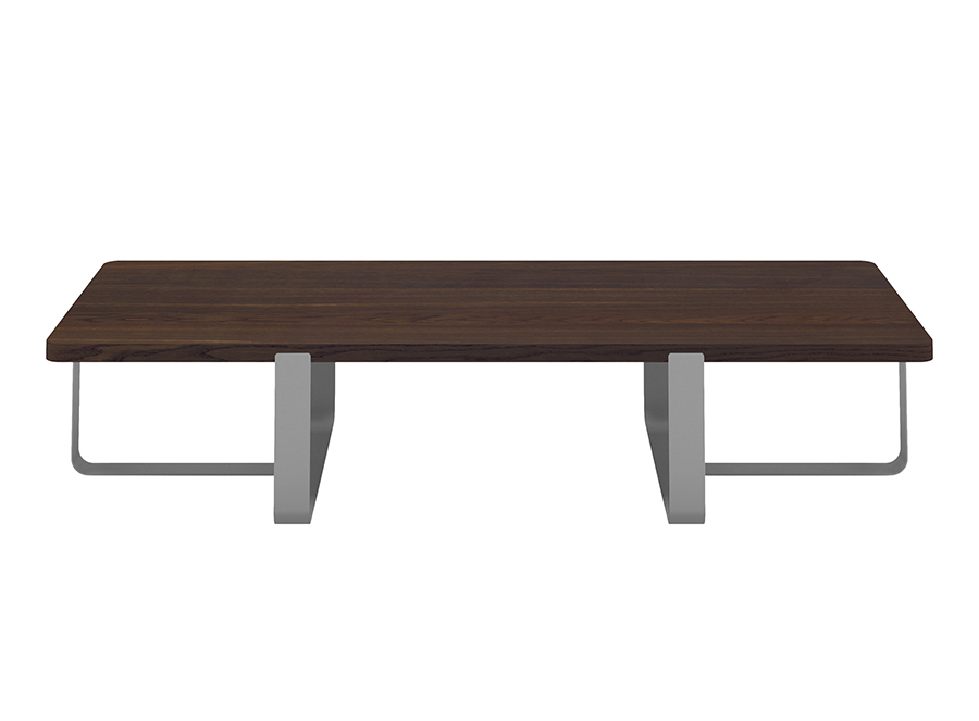 Inn Meme Design est une table de salon avec plateau en chêne plaqué tinté fumé et pieds en métal laqué disponibles dans toutes les couleurs de la palette. Un travail soigné de fraisage du plateau pour insérer les pieds a été effectué. Livrée en deux colis, un pour le plateau et un pour le pieds.