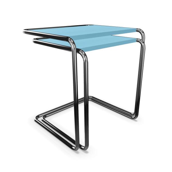THONET set de 2 tables basses B 97 (Azure blue - Hêtre II and acier chromée)