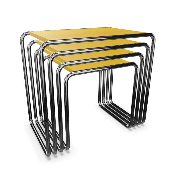 THONET set de 4 tables basses B 9 (Lemon yellow RAL 1012 - Hêtre II and acier chromée)