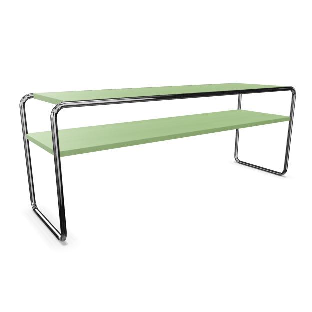 L'endroit idéal pour ranger rapidement vos affaires et les avoir toujours à portée de main. Les tables d'appoint B 10 sont de forme étroite et allongée, mais elles représentent en même temps un élément décoratif qui ne passe inaperçu dans aucun appartement ou bureau. Aujourd'hui l'esthétique linéaire n'est plus une nouveauté, mais à cette époque Marcel Breuer devait lutter contre un style d'habitation chargé et excessivement décoré, encore très répandu dans les années 1920, avant de percer avec ses propres meubles en acier tubulaire, élégants et essentiels. . Après les premières expériences avec l'acier tubulaire, un matériau complètement nouveau dans ces années-là, Breuer a conçu une série de tables dont la table longue et étroite B 10 et a travaillé en même temps sur un projet de chaise innovant. Seul le tube d'acier plié à froid garantissait la stabilité et l'élasticité nécessaires à la création de ces modèles. Les premiers meubles en tube d'acier étaient dotés de pieds et de patins et n'exploitaient pas encore l'effet ressort typique de ce matériau innovant. À partir de 1928, Breuer commença à construire les premiers prototypes de ce qui est aujourd'hui la célèbre chaise cantilever, en s'inspirant du modèle de Mart Stam : une chaise cantilever composée de dix morceaux de tube, tous de même longueur, et reliés par des brides, initialement encore rigide et immobile. Les créations de Breuer sont considérées comme de véritables jalons dans l'histoire du mobilier moderne. Thonet a immédiatement reconnu le potentiel des meubles en tube d'acier et a immédiatement commencé à collaborer avec les designers les plus avant-gardistes, devenant ainsi, dès les années 1930, le premier fabricant mondial de meubles en tube d'acier.