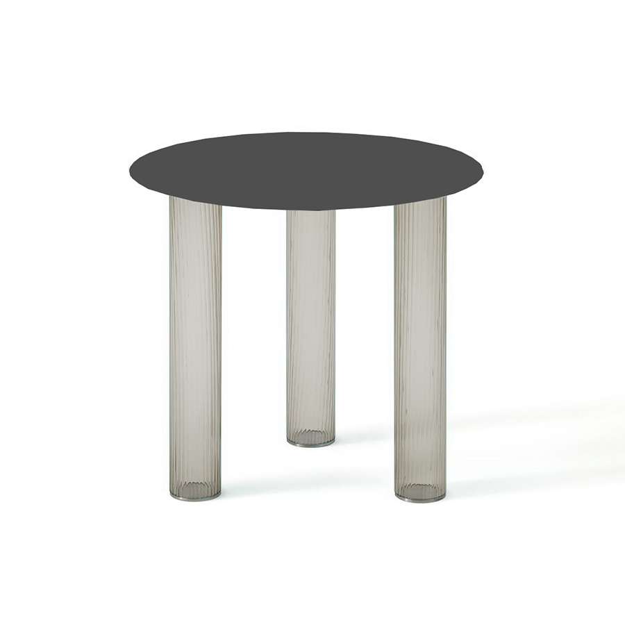 ZANOTTA table basse ronde ECHINO Ø 48 x H 44 cm (Fumé - Verre soufflé et plan noir)