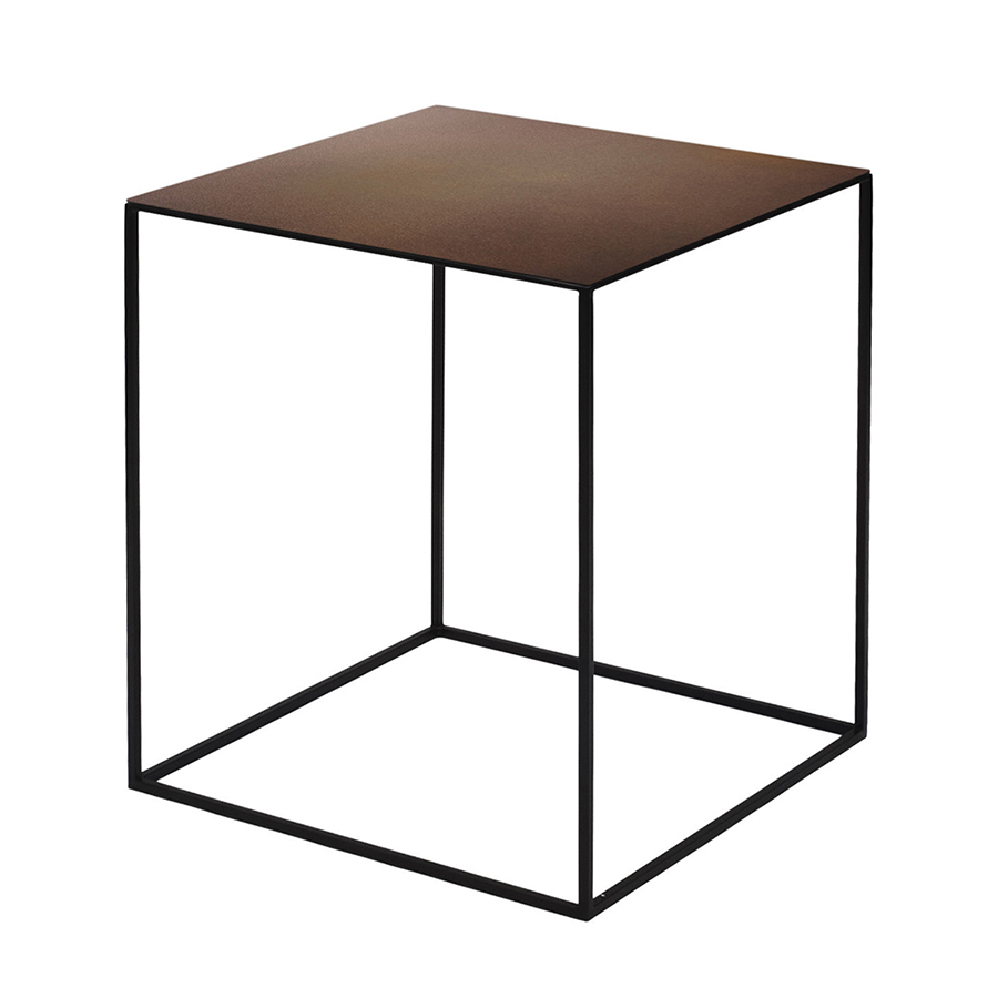 ZEUS table basse carré SLIM IRONY LOW TABLE 41 x 41 cm (H 46 cm plateau rouille gaufré - métal verni noir cuivré sablé)