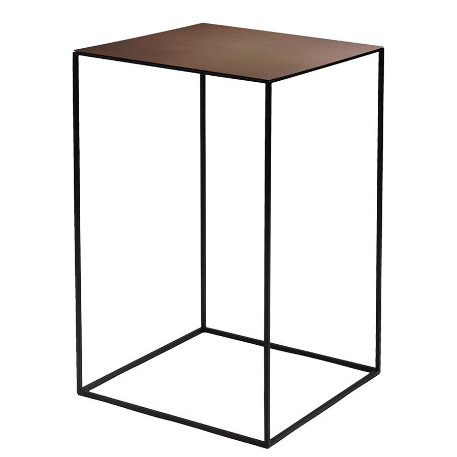 ZEUS table basse carré SLIM IRONY LOW TABLE 41 x 41 cm (H 64 cm plateau rouille gaufré - métal verni noir cuivré sablé)