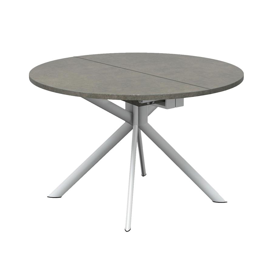 CONNUBIA table extensible à rallonge avec piètement blanc optique mat GIOVE CB/4739-D 120 cm (Plateau plomb et rallonge en stratifié tourterelle mat - métal et céramique)
