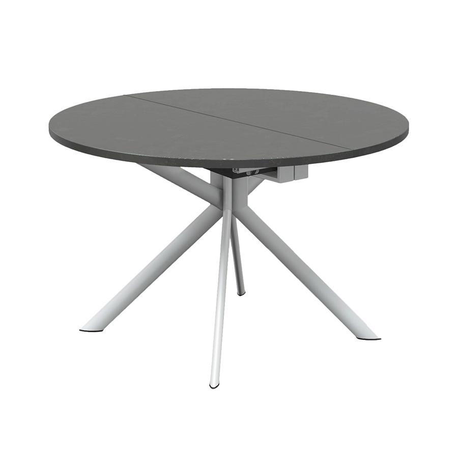 CONNUBIA table extensible à rallonge avec piètement blanc optique mat GIOVE CB/4739-D 120 cm (Plateau en oxyde noir et rallonge en stratifié noir mat - métal et céramique)