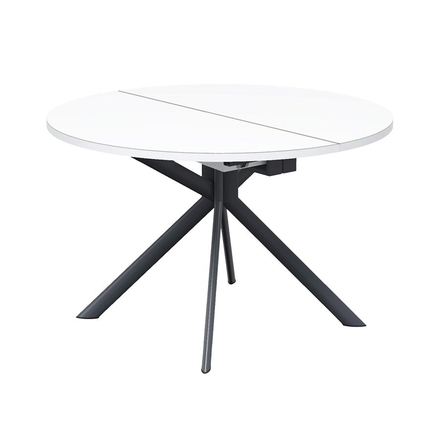CONNUBIA table extensible à rallonge avec piètement gris mat GIOVE CB/4739-D 120 cm (Plateau extra-clair et extension en stratifié blanc optique opaque - Métal et verre sérigraphié)