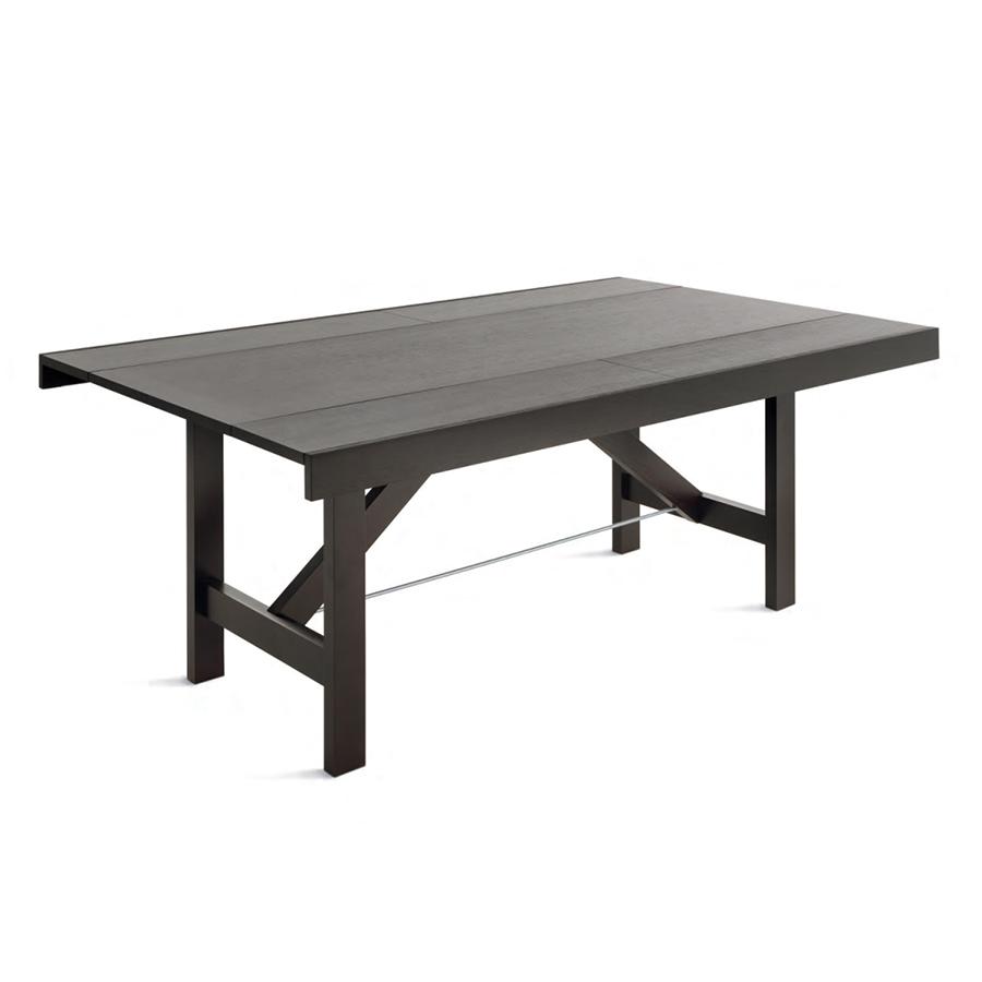 Capriata est une table au plateau inhabituellement étroit et long. Ces proportions, en plus d’être très pratiques dans différentes solutions d’aménagement, permettent à la structure portante d’être bien visible dans ses proportions parfaites qui rappellent les charpentes des toits en bois. Le projet est complété par une solution extensible puisque, au lieu de s’allonger, Capriata a la particularité de s’élargir sur ses deux longueurs, grâce à l’extraction des châssis et à l’ouverture successive latérale des rallonges. Dans son extension maximum, cette manœuvre permet de doubler quasiment la largeur du plateau.