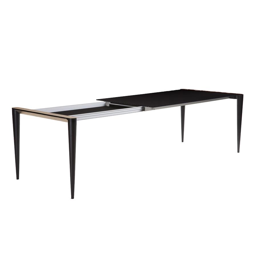 HORM table extensible à rallonge rectangulaire BOLERO avec plateau en Fenix noir (216 x 98 cm chêne naturel - Bois massift, Fenix et métal)