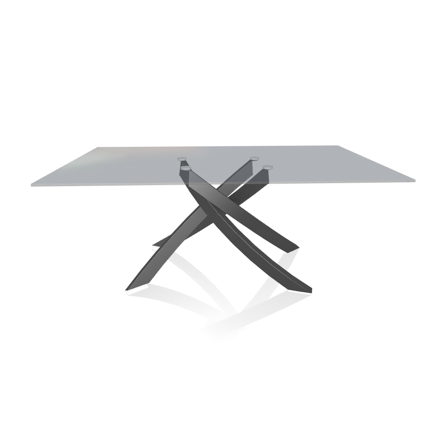 BONTEMPI table avec structure anthracite ARTISTICO 20.00 180x106 cm (Transparent fumé - Plateau en verre et structure en acier laqué anthracite)
