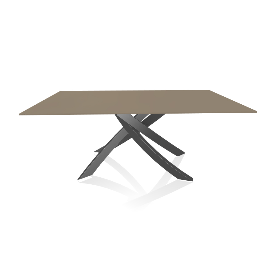 BONTEMPI table avec structure anthracite ARTISTICO 20.00 180x106 cm (Anti-rayures tourterelle opaque - Plateau en verre et structure en acier laqué anthracite)