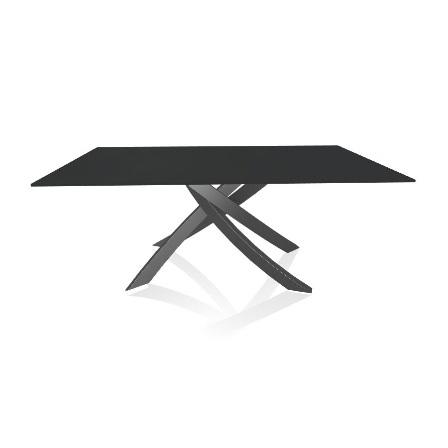 BONTEMPI table avec structure anthracite ARTISTICO 20.00 180x106 cm (Anti-rayures anthracite opaque - Plateau en verre et structure en acier laqué anthracite)