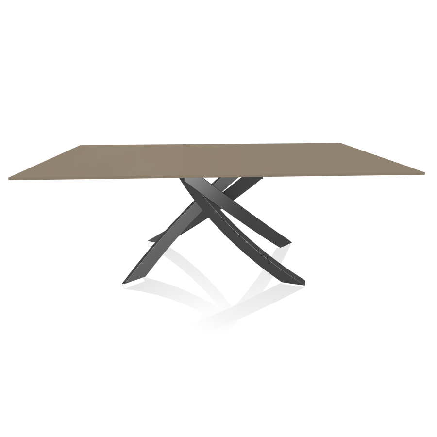 BONTEMPI table avec structure anthracite ARTISTICO 20.01 200x106 cm (Anti-rayures tourterelle opaque - Plateau en verre et structure en acier laqué anthracite)