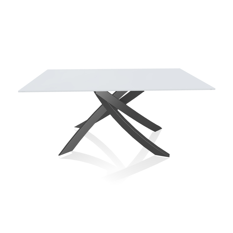 BONTEMPI table avec structure anthracite ARTISTICO 20.13 160x90 cm (Anti-rayures blanc opaque - Plateau en verre et structure en acier laqué anthracite)