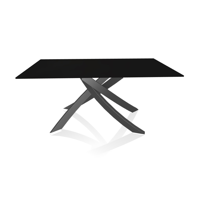 BONTEMPI table avec structure anthracite ARTISTICO 20.13 160x90 cm (Anti-rayures noir opaque - Plateau en verre et structure en acier laqué anthracite)