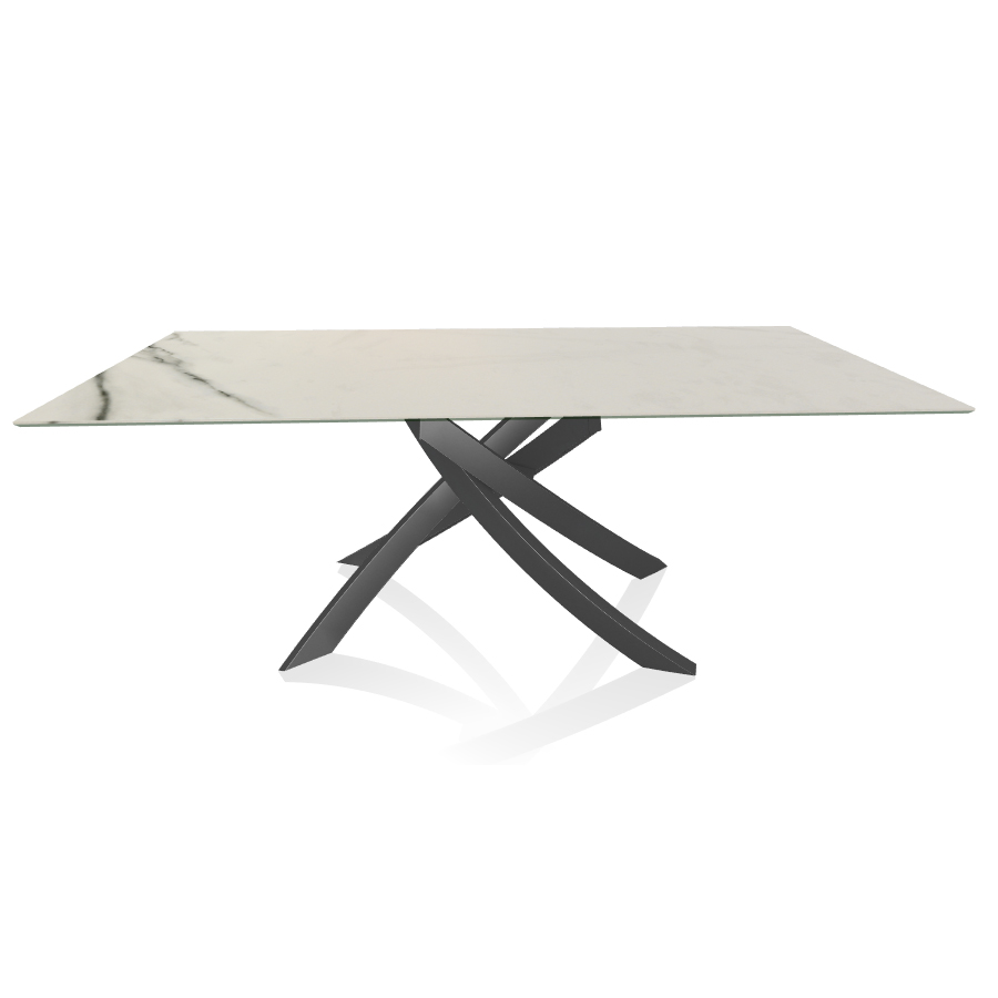 BONTEMPI table avec structure anthracite ARTISTICO 52.45 200x100 cm (Blanc Statuario mat - Plateau en SuperMarbre et structure en acier laqué anthracite)