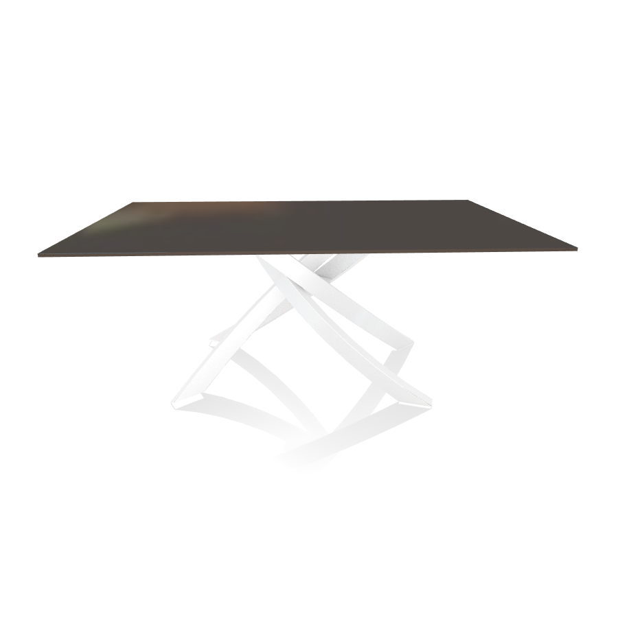 BONTEMPI table avec structure blanche ARTISTICO 20.00 180x106 cm (Laquè anthracite brillant - Plateau en verre et structure en acier laqué blanc)