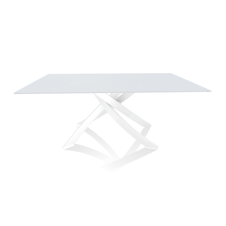 BONTEMPI table avec structure blanche ARTISTICO 20.00 180x106 cm (Anti-rayures blanc opaque - Plateau en verre et structure en acier laqué blanc)