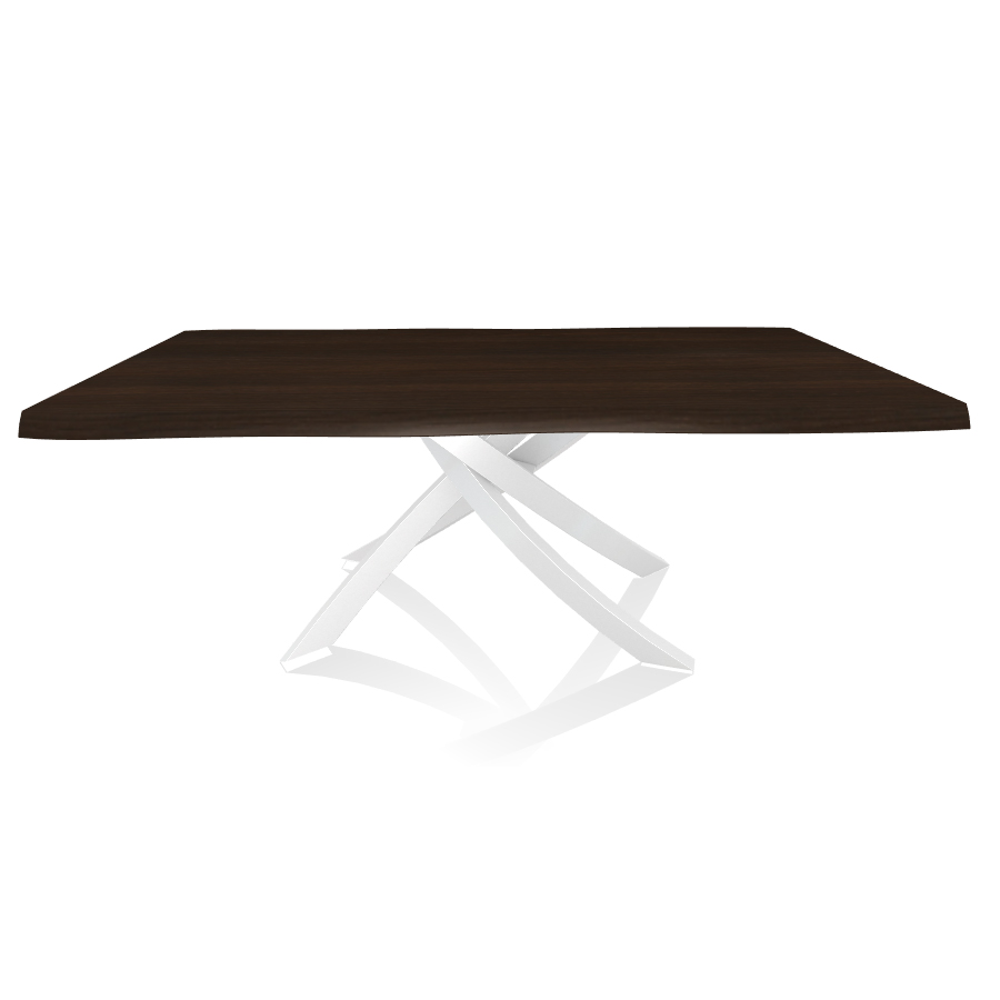 BONTEMPI table avec structure blanche ARTISTICO 20.01 200x106 cm (Noyer - Plateau en bois plaqué avec bords massif irrégulier et structure en acier laqué blanc)