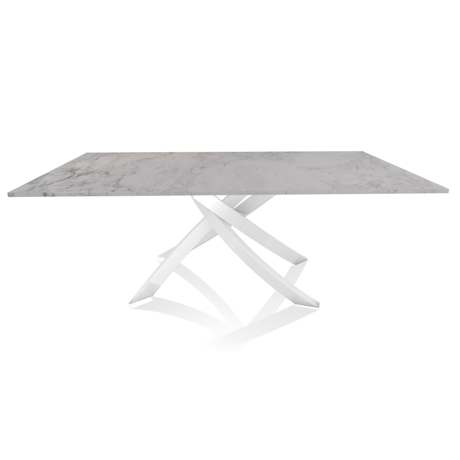 BONTEMPI table avec structure blanche ARTISTICO 20.01 200x106 cm (Blanc Dolomite - Plateau en marbre naturel et structure en acier laqué blanc)