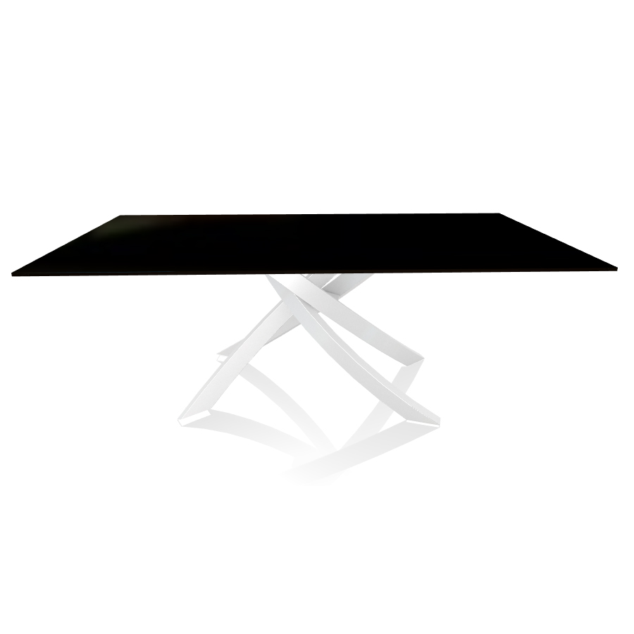BONTEMPI table avec structure blanche ARTISTICO 20.01 200x106 cm (Laqué noir brillant - Plateau en verre et structure en acier laqué blanc)