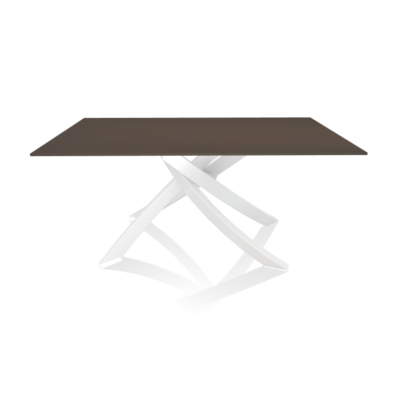 BONTEMPI table avec structure blanche ARTISTICO 20.13 160x90 cm (Laquè anthracite brillant - Plateau en verre et structure en acier laqué blanc)