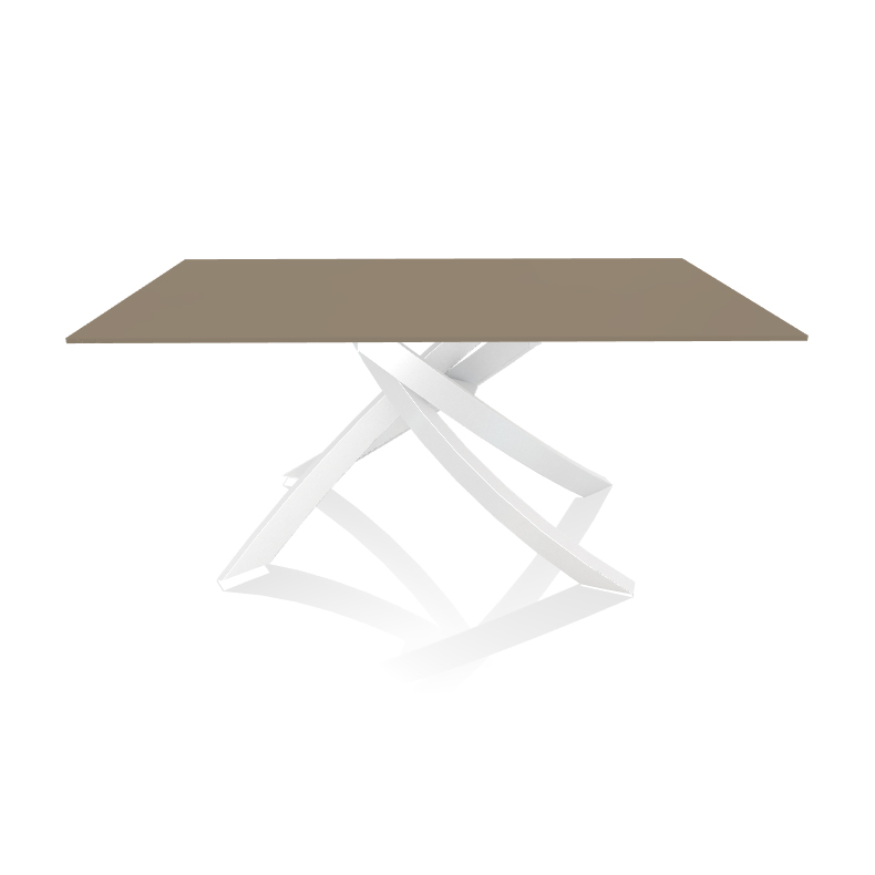 BONTEMPI table avec structure blanche ARTISTICO 20.13 160x90 cm (Anti-rayures tourterelle opaque - Plateau en verre et structure en acier laqué blanc)