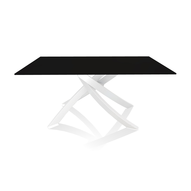 BONTEMPI table avec structure blanche ARTISTICO 20.13 160x90 cm (Anti-rayures noir opaque - Plateau en verre et structure en acier laqué blanc)