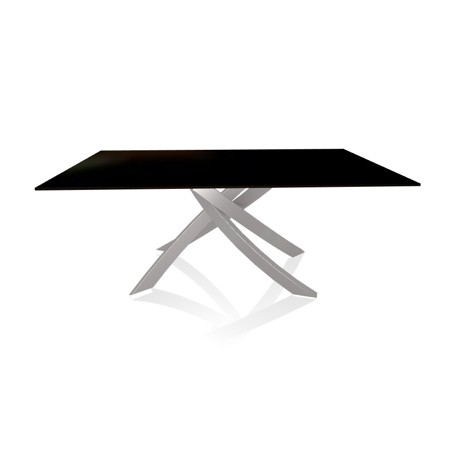 BONTEMPI table avec structure gris clair ARTISTICO 20.00 180x106 cm (Laqué noir brillant - Plateau en verre et structure en acier laqué gris clair)