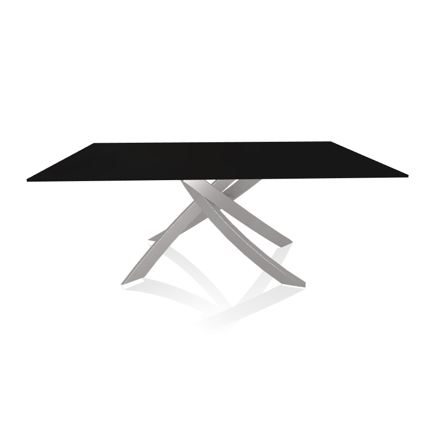 BONTEMPI table avec structure gris clair ARTISTICO 20.00 180x106 cm (Anti-rayures noir opaque - Plateau en verre et structure en acier laqué gris clair)