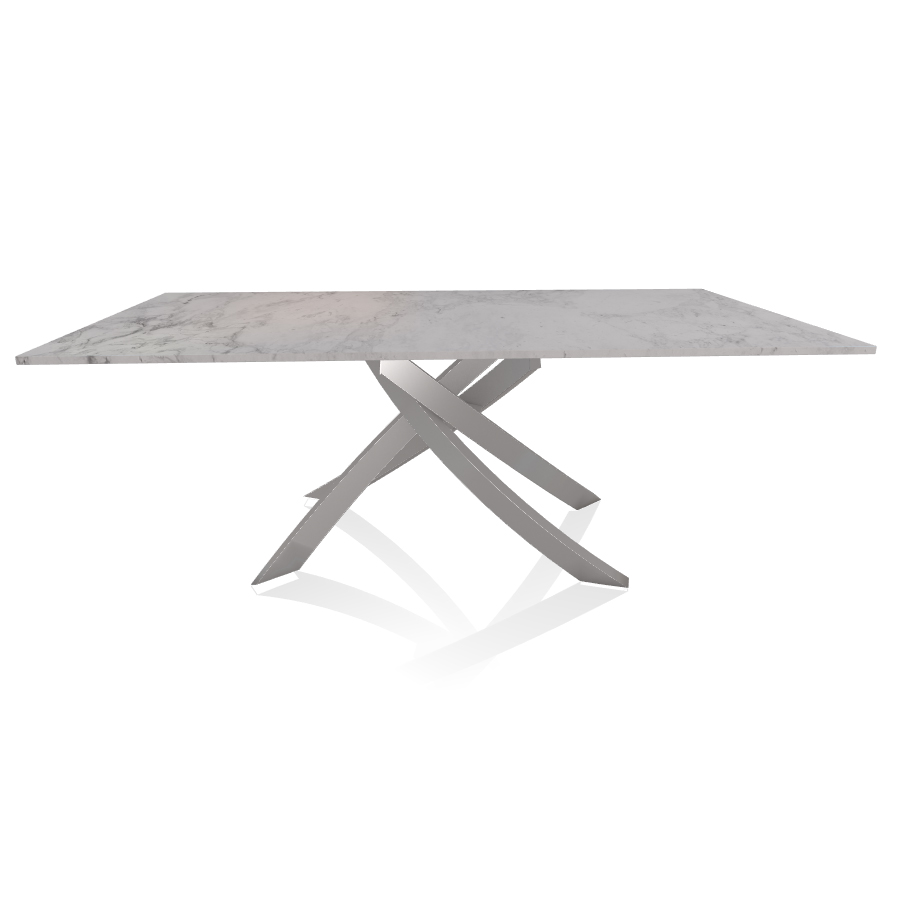 BONTEMPI table avec structure gris clair ARTISTICO 20.01 200x106 cm (Blanc Dolomite - Plateau en marbre naturel et structure en acier laqué gris clair)