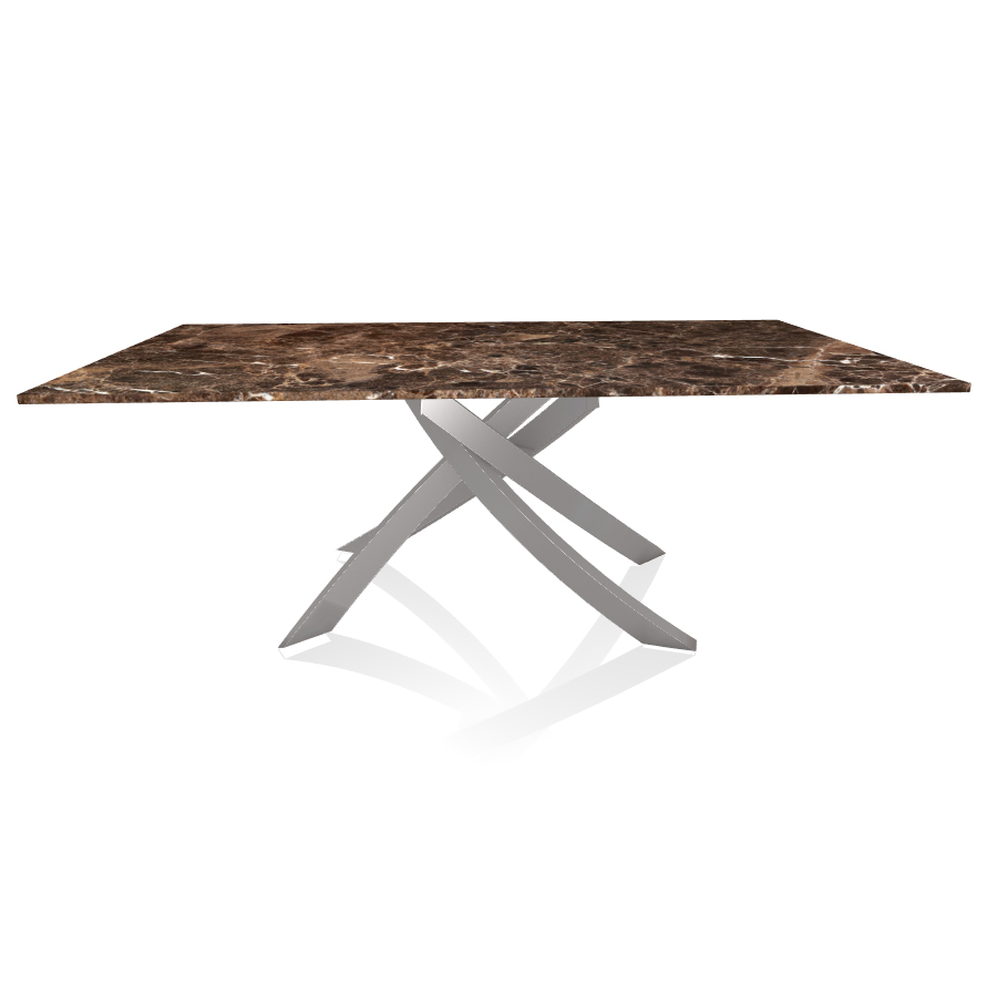 BONTEMPI table avec structure gris clair ARTISTICO 20.01 200x106 cm (Dark Emperador - Plateau en marbre naturel et structure en acier laqué gris clair)