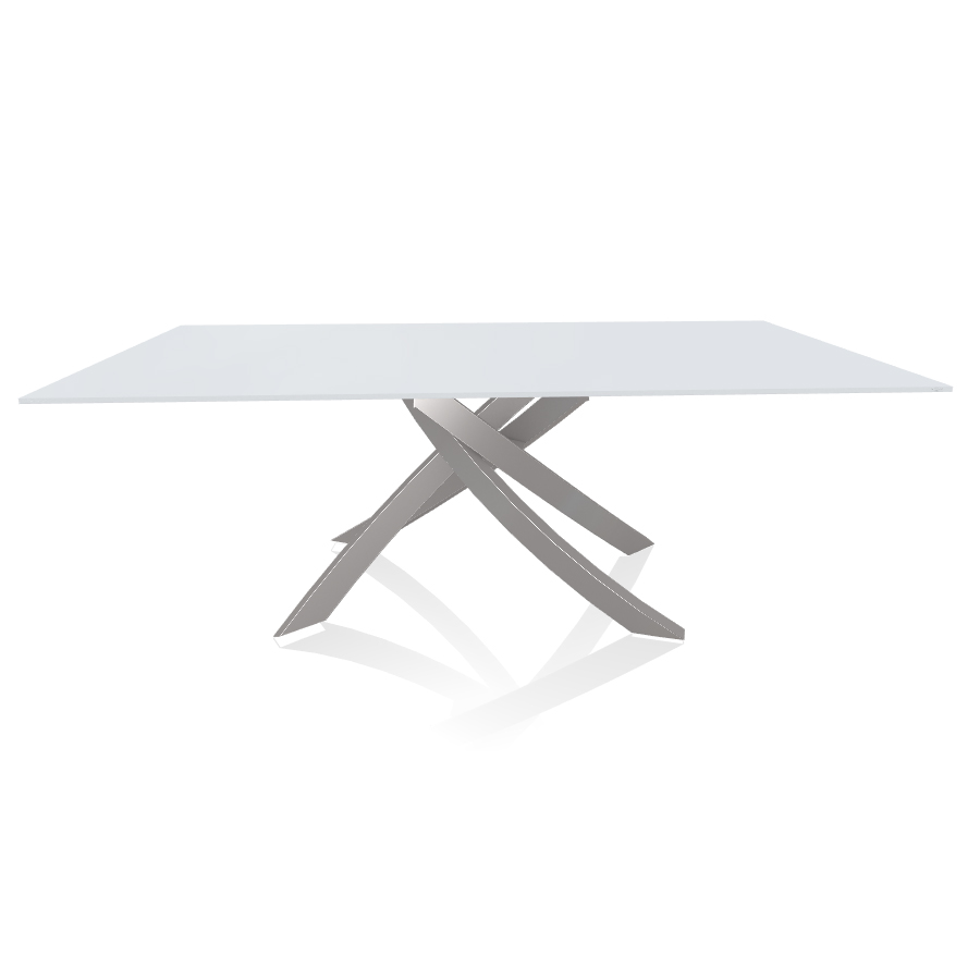BONTEMPI table avec structure gris clair ARTISTICO 20.01 200x106 cm (Anti-rayures blanc opaque - Plateau en verre et structure en acier laqué gris clair)